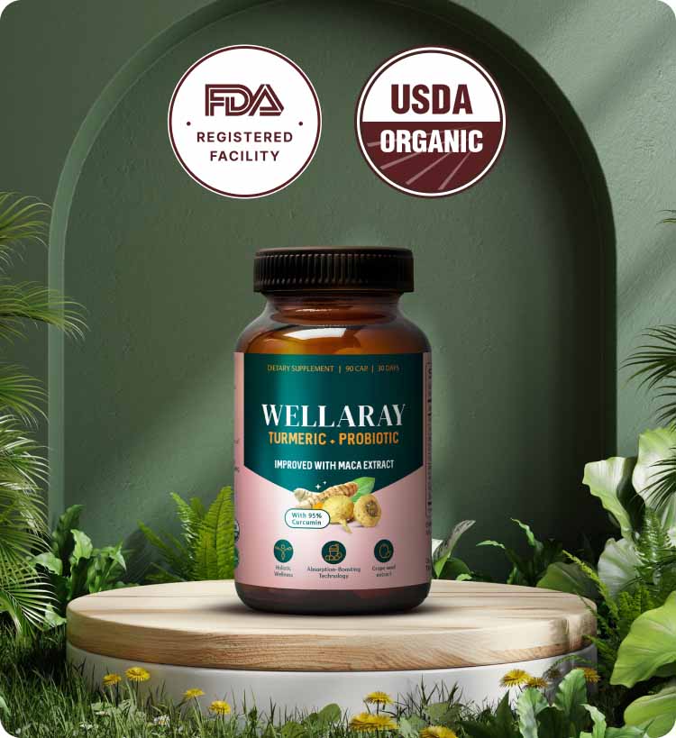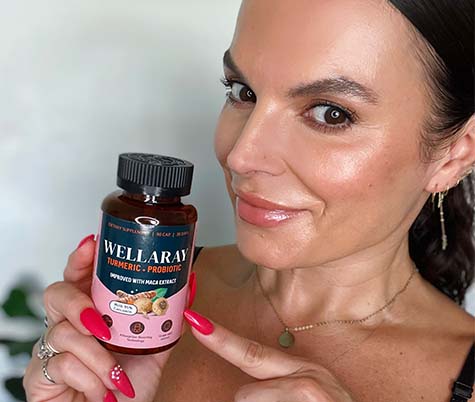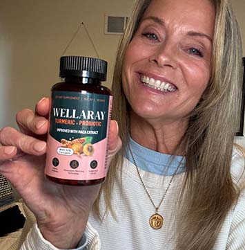 Cada porción de Wellaray (3 cápsulas) incluye: 400 mg de mezcla probiótica (68,2 mil millones de UFC), 250 mg de extracto de raíz de cúrcuma al 95 %, 250 mg de extracto de maca (tubérculo), 200 mg de extracto de salvia común, 100 mg de extracto de semilla de uva, 80 mg de extracto de rizoma de cohosh negro, 80 mg de extracto de trébol rojo, 50 mg de extracto de raíz de rhodiola y 2,5 mg de extracto de pimienta negra.
